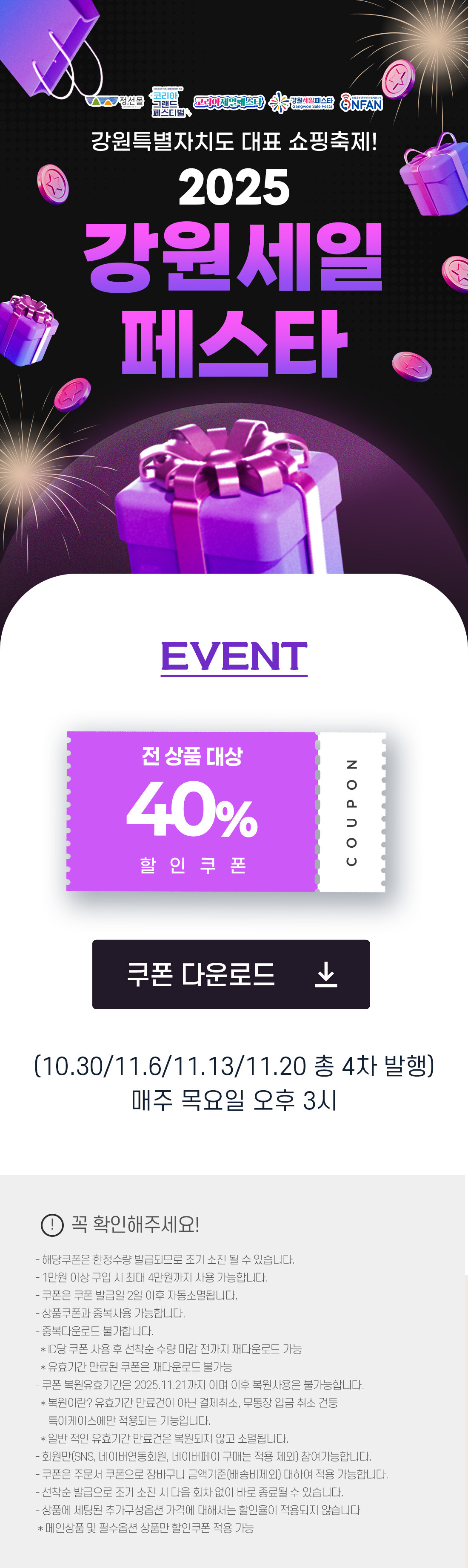 2025 강원세일페스타 정선몰 전상품 40% 할인쿠폰 ...