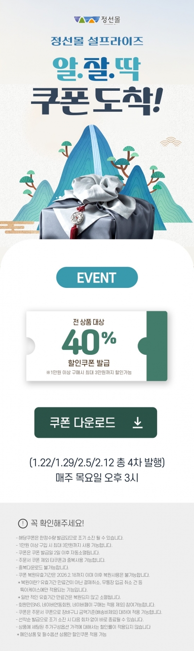 [이벤트마감안내]2024 정선몰 연말감사 40% 할인쿠...