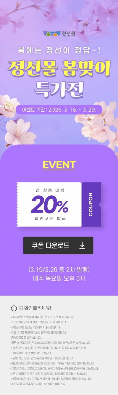 2025 정선몰 설맞이 전상품 30% 할인쿠폰 이벤트!
